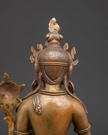 This handmade White Tara Buddhist altar statue is a stunning and powerful addition to any Tibetan Buddhist altar or meditation room. This statue, crafted from brass and measuring 28 cm in height and 16.5 cm in width, embodies the tranquil and loving essence of White Tara, the revered goddess of longevity, healing, and spiritual awakening. The meticulous craftsmanship portrays her serene look and sacred mudras, providing a focus point for meditation and spiritual practice.