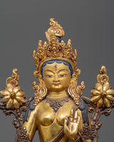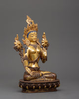 Gold-Plated Oxidized Copper White Tara Compassionate Deity