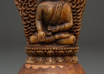 The figurine, hand-carved from wood, represents exquisite craftsmanship and attention to symbolic detail. Shakyamuni Buddha's tranquil look stimulates attention, and his reclining position represents balance and inner harmony. Weighing only 0.17kg, this figurine captures the spiritual essence of traditional Tibetan and Himalayan workmanship. This wooden Shakyamuni Buddha figurine is ideal for practitioners, collectors, and anybody looking for a significant piece of Buddhist decor. It reminds us to meditate, be compassionate, and find inner peace.