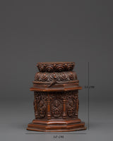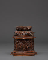 This Buddhist Dharma Dhatu Sculpture embodies centuries of holy tradition and spiritual wisdom, making it a timeless work of handcrafted art. This sculpture, crafted with precision from copper and featuring an oxidized finish, stands 11cm tall and 10cm broad, weighing 0.93kg and representing stability and balance in your sacred space. The rusted patina enhances its antique appearance, giving it a vintage feel that evokes the atmosphere of ancient Buddhist monasteries and Himalayan temples. Every element of this sculpture has been meticulously crafted by expert artisans, preserving the traditional techniques of Tibetan metallurgy that have been passed down through the generations. It is a meaningful ornamental and ritual piece, ideal for your meditation room, home altar, spiritual practice space, or as a thoughtful gift for individuals who value mindful living and spiritual exploration.