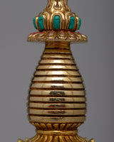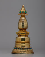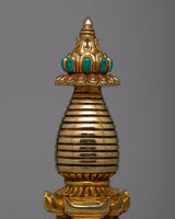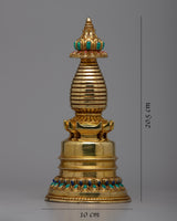 24k Gold Plating enhances the stupa's visual appeal and symbolic meaning by adding an air of grandeur and majesty. A potent focal point for spiritual practice, the Copper Kadampa Stupa invokes blessings and spiritual guidance on the path to enlightenment whether it is placed in private altars, meditation areas, or holy settings.