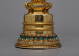 Presenting the Copper Kadampa Stupa, a revered representation of enlightenment and wisdom in spirituality. With a height of 20.5 cm and a luxurious 24k Gold Plating , this magnificent stupa is handcrafted on a Copper body and exudes divine grace and reverence.