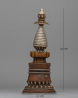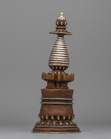 Handcrafted Copper Kadampa stupa with Silver-Plated | Sacred Buddhist Spiritual Symbolizing Decor