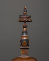 The Copper Oxidized Stupa is a 50.5 cm tall Tibetan Buddhist shrine that symbolizes enlightenment, protection, and spiritual awakening. In Tibetan tradition, stupas are architectural symbols of the enlightened mind, representing the Buddha's path and acting as great spiritual beacons. Handcrafted from copper, this stupa has an antique aspect that conveys spiritual depth and eternal beauty.