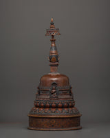 Copper Oxidized Buddhist Stupa for Altars and Sacred Spaces