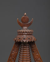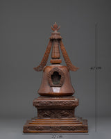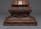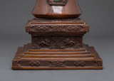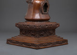 This artifact was meticulously crafted from oxidized copper and features a deep, antique finish that enhances its spiritual pr ence. The atina not only provides depth and texture, but it also represents the customary aging process observed in old trees. With a height of 47 cm, a breadth of 27 cm, and a weight of 9.04 kg, this stupa carries significant physical and spiritual weight, making it perfect for use in rituals, shrine arrangements, or temple displays. Every element, from the outstanding dome to the finely crafted base, demonstrates the artist's dedication to the spiritual tradition it represents.