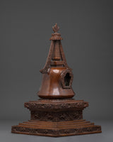 This Handcrafted Copper Buddhist Stupa is a beautiful representation of peacefulness, awakening, and enlightened energy, bringing the spirit of Tibetan spiritual heritage into your sacred space. This stupa, crafted in the traditional Himalayan artistic style, is more than just a decorative item; it is a profoundly holy object that aims to inspire reverence, focus, and silence. Stūpas, which are often found on altars in homes and monasteries, symbolize the Buddha's Enlightenment and serve as effective instruments for devotional offerings and meditation.