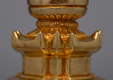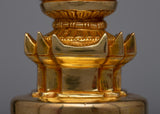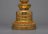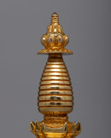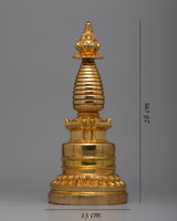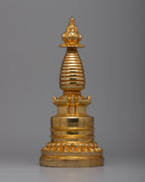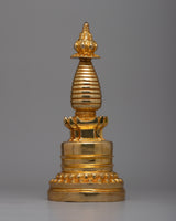 Each intricate feature of the shrine stupa, which is handcrafted with care and accuracy, demonstrates the artisan's commitment to preserving the beauty and sacredness of ancient Buddhist architecture. The piece is made more visually appealing and has greater symbolic significance due to the combination of 24k Gold Plating and copper, which gives it an air of grandeur and veneration.