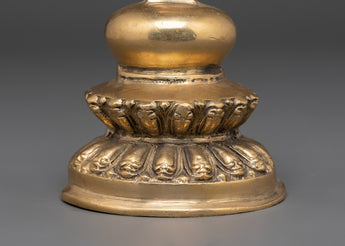 This Himalayan Buddhist Stupa is a manifestation of spiritual wisdom, designed to help you on your mindfulness and meditation path. The Stupa's intricate carvings and themes serve as a poignant reminder of the transience of existence, fostering inner calm and a deeper connection to higher consciousness. Whether put on an altar, shelf, or dedicated meditation room, this Brass Stupa provides a constant source of positive energy, spiritual richness, and a deeper connection to your practice.