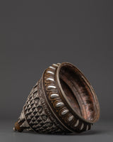 This Himalayan Handcrafted Religious Stupa is a spiritual symbol with intricate craftsmanship. Standing at 22 cm tall and weighing 2.18 kg, the Stupa is made from oxidized copper, plated with silver to bring out its divine energy. This piece makes for an ideal addition to your meditation space, altar, or home decor, bringing a sense of peace, protection, and enlightenment. The meticulously crafted Stupa represents a harmonious fusion of craftsmanship and spiritual significance.