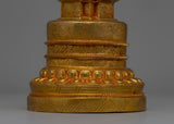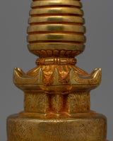 This Stupa Kadampa , made of copper and stupa is plated with a smooth layer of gold, which symbolizes purity and the sacred energy associated with enlightenment. Gold is often used in religious objects in Tibetan Buddhism to represent divine energy and blessings, it is an outstanding depiction of deep cultural and spiritual value. As a Kadampa-style Buddhist stupa, it is a powerful symbol of enlightenment and serenity, reflecting calm and wisdom. The gold plating creates a sense of sacredness, while the detailed Buddhist artwork incorporates Dharma teachings, making it an effective addition to any spiritual or beautiful setting. With its exquisite design and cultural significance, this stupa is more than just a work of beauty; it is also a beacon of spiritual direction.