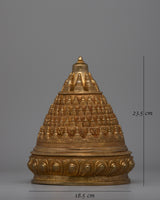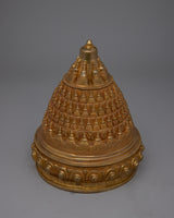 This Stupa is handcrafted with unique details and plated with gold for Nourishment and Restraint in your life.