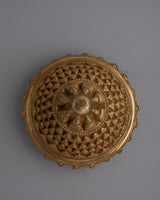 This Handmade Tibetan Stupa is a stunning combination of spiritual importance and artisanal artistry. This stupa, made of Copper body and plated with gold, is a bright emblem of enlightenment and harmony. Its gorgeous layout includes a series of small stupas carved on the exterior, each accompanied with the sacred "Om Ah Hung" mantra. These mantras are famed for their capacity to cleanse and bless any environment, changing it into a haven of positive energy and spiritual grace.
