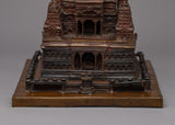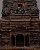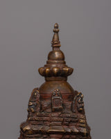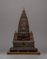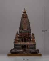The Buddha Temple Statue Art is a stunning example of traditional craftsmanship, carefully made from a body of copper. This statue, which stands an astounding 35 centimeters tall, perfectly embodies the calm and magnificent attitude of the Mahabuddha Temple, expressing the building's architectural majesty and spiritual significance. The statue's oxidized finish adds to its appeal and historical veneration by giving it an aged and classic appearance.