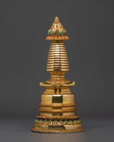 Nepalese Copper Stupa | Gold-Plated Buddhist Shrine for Altar & Meditation