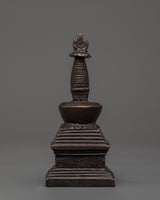 Handcrafted Oxidized Brass Tibetan Stupa | Religious Decorative Buddhist Shrine