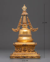 Sacred Buddhist Stupa Monument | Gold Plated Copper with Turquoise Inlay