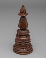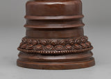 Sacred Copper Kadampa  Stupa with an oxidized copper body provides an interesting and appreciated presence in any spiritual setting. This stupa, 18.5 cm tall, 8 cm wide, and weighs 0.68 kg, represents traditional Buddhist creativity with a subtle as well, historical finish. The copper has a traditional attractiveness which symbolizes timelessness and spiritual strength. Its slight measurements and intricate workmanship make it an ideal complement to any altar, meditation area, or personal space.