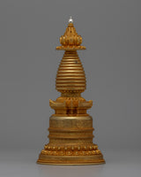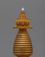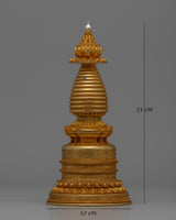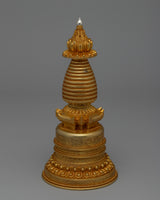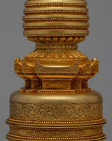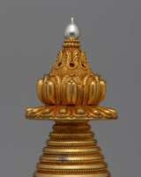 This Stupa is handcrafted with unique details and plated with gold for Nourishment and Restraint in your life.