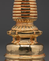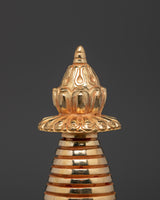 Expertly crafted from copper and gold-plated, this 0.55kg stupa features intricate details that reflect the skilled artistry of Himalayan craftsmen. The stupa’s tiered structure and lotus base are emblematic of spiritual ascent and purity. Whether used as an altar centerpiece, ritual object, or meaningful spiritual gift, this stupa infuses any environment with serenity, mindfulness, and sacred energy.