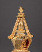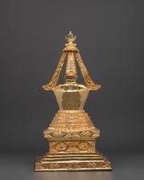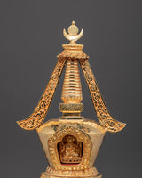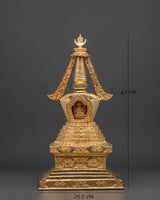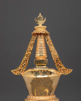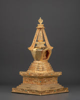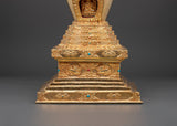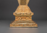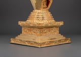 Tibetan Buddhist Stupa Sculpture | Gold Plated Copper Chorten