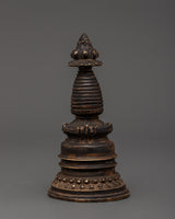 Tibetan Stupa with Antique Finish | Buddhist Sacred Sculpture