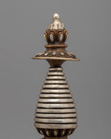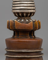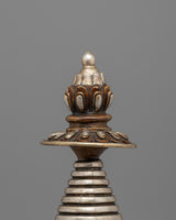 Elegant Tibetan Stupa with Silver Plating | Copper Body with Intricate Silver-Plated Spiral Dome