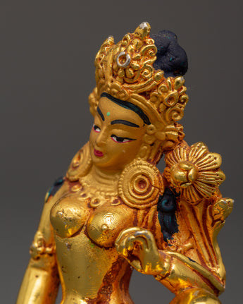 This Gold Plated Parvati Statue (7cm x 5.5cm, 0.18kg) beautifully represents Parvati, the Hindu goddess of love, fertility, and divine energy. Made with a copper body and finished with gold plating, this statue radiates purity, divine grace, and spiritual power. Parvati, revered as the consort of Lord Shiva, symbolizes the nurturing and loving aspects of the feminine, making her a powerful addition to your Buddhist or Hindu altar and meditation space.