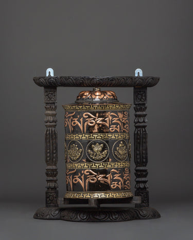 Each Prayer Wheel in our collection is purely handmade in Nepal by master artisans, incorporating traditional design and precise mantra placement. Available in various sizes, materials, and mounting styles, they are suitable for both personal and monastic use.