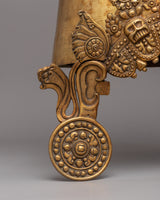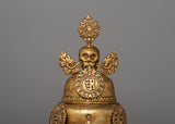 This crown weighs 1.80kg and is lightweight, making it an excellent addition to temples, meditation places, or spiritual collections. The old patina adds to its authenticity, highlighting its cultural and historical significance. This gold-plated Buddhist crown is an exceptional item that embodies spiritual strength and creative craftsmanship. It can be utilized for Buddhist rituals, meditation activities, or as an impressive presentation piece. It is an ideal piece for collectors, practitioners, and people who value sacred Buddhist artifacts.