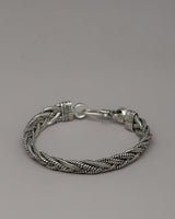 The bracelet's elaborate braided design demonstrates the beauty of professional crafting, creating a visually appealing texture that adds to its ethnic and vintage charm. The braided design represents strength and togetherness, while the intricate endcaps and loop closing provide an air of refinement. Whether worn alone as a statement piece or with other accessories, this 21-cm White Metal Bracelet is a must-have for individuals who value traditional and artisanal jewelry.
