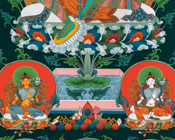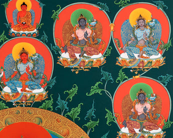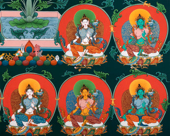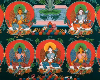 Twenty-one Tara Thangka prints can be the perfect gift for a Buddhist practitioner like you. Following the tradition ofOrgyen Chokyur Dechen Lingpa, we painted this Rare 21 Tara assembly thangka in our studio.