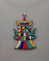 The 8 Auspicious Symbols Set is a beautifully crafted collection made from brass, adorned with artificial turquoise and coral stones, adding color and spiritual depth. The set includes the Endless Knot, Lotus Flower, Conch Shell, Parasol, Treasure Vase, Victory Banner, Dharma Wheel, and Golden Fish, each representing essential virtues such as wisdom, purity, enlightenment, and prosperity. The Endless Knot symbolizes interconnection and unity, while the Lotus Flower represents spiritual awakening and purity. The Conch Shell signifies the spread of Dharma, and the Parasol protects from suffering. The Treasure Vase denotes abundance and fulfillment, the Victory Banner represents the triumph over ignorance, the Dharma Wheel embodies the path to enlightenment, and the Golden Fish stands for freedom and liberation.
