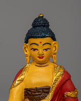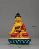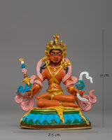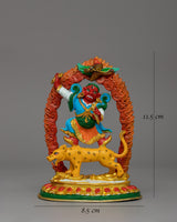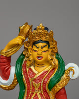 Our 8 Manifestations of Guru Rinpoche Statue Set, expertly handcrafted from excellent copper, electro-gold plated, and embellished with bright acrylic colors, depicts the glorious forms of Padmasambhava, the Second Buddha. This sacred Tibetan Buddhist figurine set, which measures 14 cm in height and 9 cm in breadth and weighs 0.430 kg, makes an excellent complement to meditation areas, Buddhist shrines, and spiritual altars. The gold-plated finish represents purity, knowledge, and spiritual illumination, whereas the copper body boosts divine energy and sacred blessings. Each manifestation represents a distinct aspect of Guru Rinpoche's enlightened acts, making this collection an effective tool for devotion, meditation, and spiritual practice.