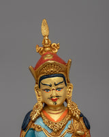 Guru Rinpoche's eight appearances represent his omniscient wisdom, compassionate acts, and ferocious protection of the Dharma. This Padmasambhava statue set acts as a spiritual guide for practitioners, assisting with meditation, ritual offerings, and tantric visualization techniques. In Tibetan Buddhism, dedication to Guru Rinpoche overcomes impediments, imparts spiritual understanding, and speeds up the path to enlightenment. Displaying this gold-plated Guru Rinpoche statue on an altar or meditation space improves spiritual connection, protection, and the benefits of the Vajrayana practice.