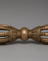 This Vajra, made of Vintage bronze, illustrates eternal artistry and profound symbolism of Buddhist tradition. Whether employed in spiritual activities or as a beautiful centerpiece, it is a strong symbol of clarity, focus, and inner strength. This 8-prong Dorje is ideal for practitioners, collectors, or as a thoughtful present for anyone learning about Buddhist traditions.