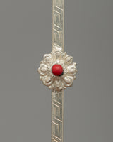 Altar Silver Plated Spoon Set is sacred for Buddhist offerings and altar rites. This handcrafted copper spoon, 22cm tall and 2.5cm wide, is finished in silver plating and delicately embellished with inlays of imitation coral and turquoise. Tibetan culture associates these symbolic stones with healing, protection, and spiritual life.