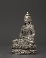 Amitabha Copper Silver Plated Statue | Tibetan Buddhist Sculpture, Handcrafted Longevity