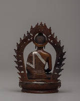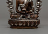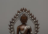 Amitabha Buddha, known for his compassion and promise of salvation, is depicted as calm and wise. The oxidized finish adds a distinct depth to the design, highlighting the statue's intricate details while heightening its timeless and sacred presence. This statue is both a decorative piece and a symbol of peace, providing a meditative presence to encourage mindfulness and inner calm.