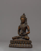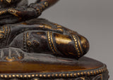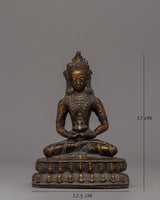 Invite the spirit of longevity, knowledge, and enlightenment into your life with this Amitayus "Buddha of Endless Life" Statue, which is precisely hand-carved on a solid copper body and has a stunning antique finish. Amitayus, a sign of infinite life and spiritual enlightenment, sits serenely, exuding heavenly grace and calm, making this a practical addition to any meditation room or altar.