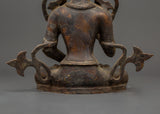 The handcrafted Amoghasiddhi Buddha statue is Made of brass, and this exquisite statue represents the enlightened attributes of Amoghasiddhi, one of the Five Dhyani Buddhas. Amoghasiddhi, also known as the Buddha of the North, is connected with wisdom, protection, and fearlessness, making this statue an excellent addition to meditation areas, Buddhist altars, or spiritual shrines.