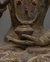 This finely crafted brass statue, measuring 27 cm tall and 24 cm wide, exudes tranquil vitality. Amoghasiddhi's serene yet powerful countenance symbolizes the transformation of envy into wisdom, while his distinctive hand gesture (mudra) indicates protection and fearlessness. Whether displayed in a home temple, yoga studio, or meditation room, this precious artifact is a powerful reminder of inner serenity and spiritual growth.