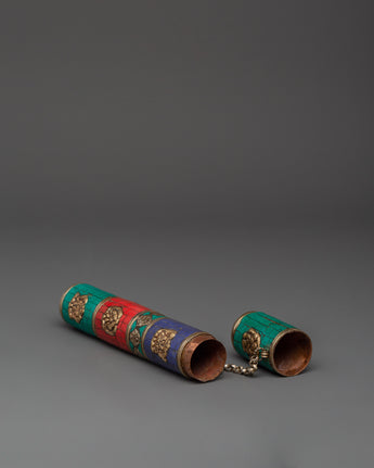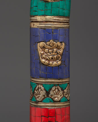 This Tibetan brass incense burner is an essential and aesthetically pleasing spiritual instrument. The auspicious motifs carved on the surface reflect the rich cultural history of Himalayan workmanship, while the mix of coral and turquoise represents harmony and calm. Whether used as a decorative incense holder or a ritual burner, it adds to the mood with relaxing scents and thoughtful design. This handcrafted piece is ideal for spiritual practitioners, yoga enthusiasts, or anybody wishing to bring a bit of sacred tradition into their home. It is both a practical tool and a meaningful present.