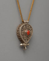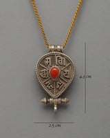 Silver Ghau Box Amulet with Coral and Avalokiteshvara's Sacred Mantra