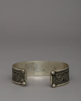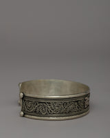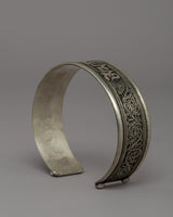 Our Avalokiteshwara mantra bracelet is expertly created from outstanding white metal, ensuring longevity and a timeless appearance. With a height of 1.8 cm, a width of 6.7 cm, and a circumference of 20 cm weighing 0.022kg, this bracelet is intended to fit comfortably while serving as a continual reminder of compassion and spiritual well-being. The bracelet has delicate engravings of the Avalokiteshwara mantra, making it more than just a piece of jewelry; it is also a spiritual tool that connects you to the forces of kindness and protection.