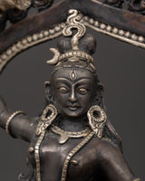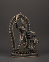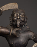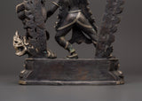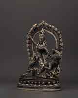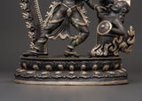 The Baglamukhi Devi Statue is a ferocious portrayal of one of Hinduism's ten Mahavidyas. Baglamukhi, also known as the Wrathful Hindu Goddess, represents the ability to defeat opponents, silence negativity, and bring order to chaos. This handcrafted statue's copper body with silver plating exudes elegance and strength. The goddess is represented with two arms, wielding a club in her right hand to restrain a demon and pulling out its tongue with her left, a powerful image that represents Stambhana, the mystical ability to stun an opponent into silence. This dominating figure, measuring 31 cm tall and 24.5 cm wide, is a gorgeous and spiritually potent addition to any altar, meditation place, or sacred home decor collection.