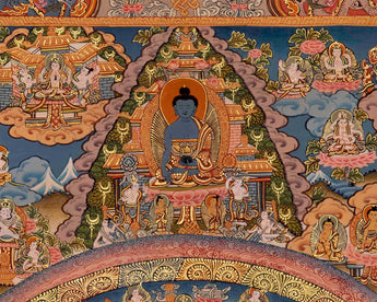 It goes without saying that every detail of a painting has a symbolic meaning. Regardless of your religious affiliation, a thangka can help you on your path to enlightenment, whether you practice Buddhism or have other religious convictions. Thangkas are paintings that depict deities with various iconographic elements and symbolism that encourage meditation on the teachings of the god they depict. Any thangka is intended to aid in the removal of the film of ignorance, which is a significant barrier to the road to enlightenment. The Thangka is revered as a holy item. They promote positivity, spread Buddhism's teachings, bring about peace, harmony, and oneness, and dispel any negative energy that may be there.