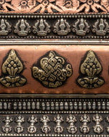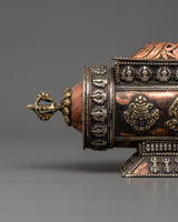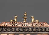 This stunning, Beautiful Tibetan Incense Burner, made of high-quality copper, is a lovely example of spiritual and artistic craftsmanship. This elaborate incense holder is 14 cm tall, 33 cm wide, and weighs 0.56 kg. It is made for both aesthetic beauty and usefulness. The elaborate holy themes, embossed flower patterns, and symbolic features add to the traditional Tibetan charm, making it an ideal addition to altars, meditation spaces, or sacred rooms.