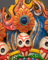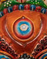 This mask, expertly built from high-quality wood and hand-painted with acrylic colors, boasts intricate detailing and expressive expressions, making it a practical addition to altar spaces, meditation rooms, or cultural exhibitions. Weighing 3.09kg, it is a magnificent showcase piece combining traditional workmanship and holy symbolism. Whether used for spiritual devotion, artistic appreciation, or ornamental purposes, this Bhairav mask is a timeless masterpiece of strength, wisdom, and divine protection.
