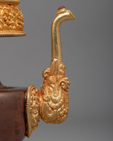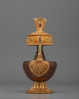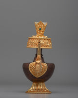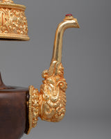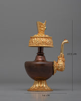 The Bhumba Set is a sacred and revered symbol in Tibetan Buddhist traditions, deeply rooted in the practice of water offerings during rituals. These beautiful vessels are more than just decorative items—they serve as powerful tools to purify the mind and space, allowing practitioners to invite positive energy and blessings into their lives. The water held within the Bhumba is considered sacred, symbolizing the cleansing of both the physical and spiritual realms. With its oxidized copper body and gold plating, the elegant design adds a sense of reverence to any altar or sacred space, creating an atmosphere of peace and serenity. With each ritual, the Bhumba Set becomes a reminder of the interconnectedness of all things and the flow of divine energy that sustains us on our spiritual path.